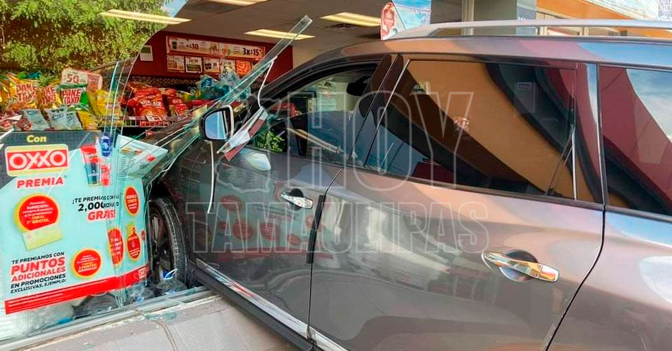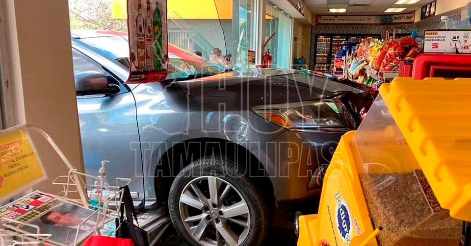 Ciudad Victoria, Tamaulipas. – Una joven conductora confundió el freno con el acelerador de la camioneta que conducía y se metió con todo y unidad al Oxxo del 13 Yucatán en Victoria.