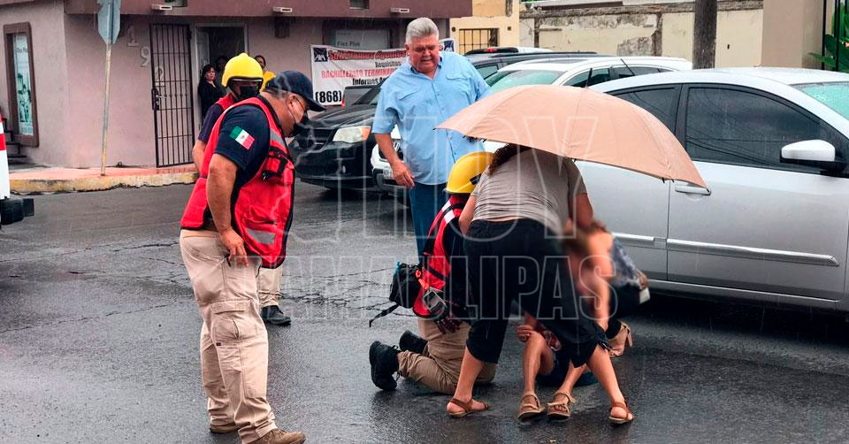 Matamoros, Tamaulipas. - En las calles 4 y Bravo de la zona centro de Matamoros, una mujer fue atropellada por un auto Nissan Sentra y resultó la dama con golpes en su cuerpo.