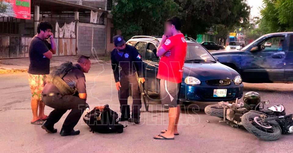 Ciudad Victoria, Tamaulipas. - Un estudiante de la Secundaria 1 resultó lesionado esta mañana, luego de ser embestido por un vehículo cuando se dirigía a la escuela a bordo de su motocicleta.