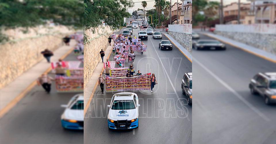 Reynosa, Tamaulipas. - La tarde de este martes familiares de personas desaparecidas realizaron una marcha la tarde de este martes por uno de los principales bulevares de Reynosa, dentro del contexto de la conmemoración internacional para recordar a las víctimas de desaparición forzada.