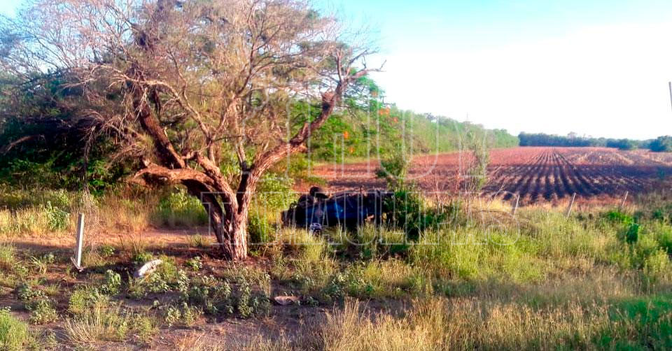 Presuntamente el exceso de velocidad provocó que el conductor perdiera el control al volante al tomar una curva, saliéndose de la carretera para dar de volteretas y terminar entre una parcela.