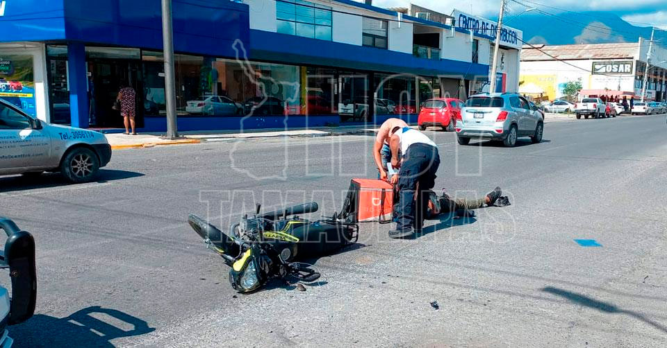 Conductora tumba a motociclista repartidor en Ciudad Victoria