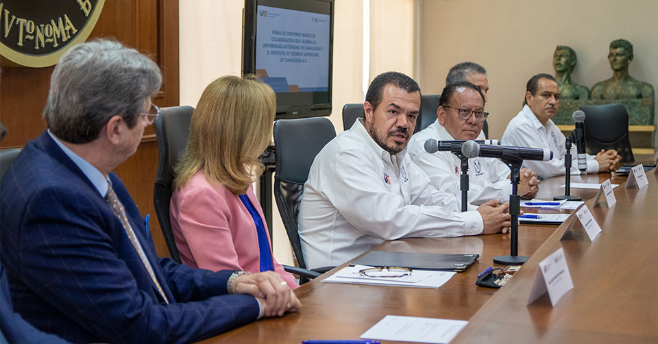 Dijo que el convenio con la UAT permitirá que se desarrollen acciones concretas que coadyuven a la formación personal y profesional de los alumnos y maestros, así como la mejora continua del entorno educativo del IEST.