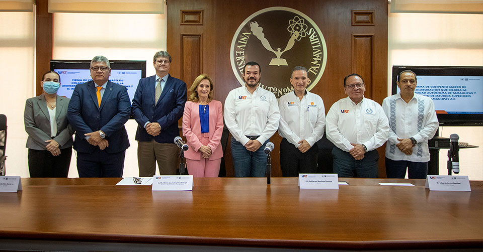 Ciudad Victoria, Tamaulipas. - La Universidad Autónoma de Tamaulipas (UAT) y el Instituto de Estudios Superiores de Tamaulipas (IEST) de la Red de Universidades Anáhuac firmaron un convenio marco de colaboración que fortalecerá el trabajo conjunto en materia de salud, además de abrir oportunidades de generar programas específicos en las áreas de investigación, docencia, posgrado, servicio social, entre otras.