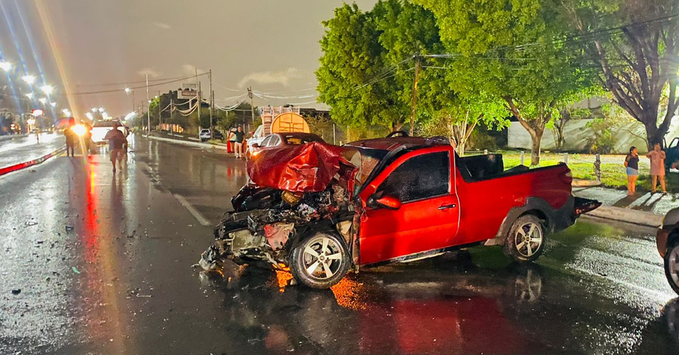 Ciudad Victoria, Tamaulipas. – Un masculino y dos mujeres resultaron lesionados durante la noche, tras registrarse un fuerte choque entre dos unidades Pick Up, en el kilómetro 6 de la carretera Victoria-Monterrey, a la altura del Ejido Benito Juárez.