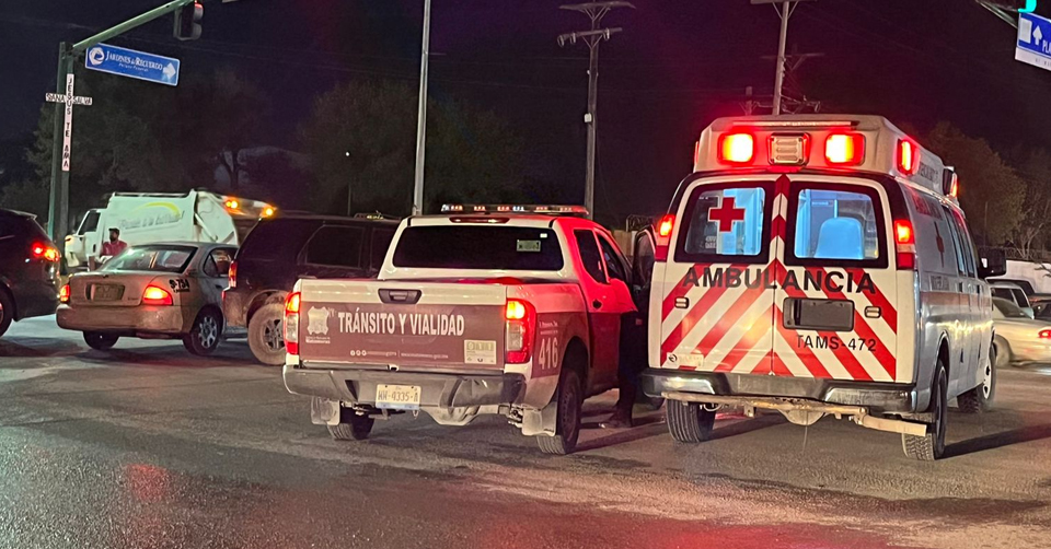 El percance vial tuvo lugar en la Avenida Pedro Cárdenas con Marte R. Gómez donde una camioneta Ford, Escape, negra y una ambulancia de la Cruz Roja colisionaron.
