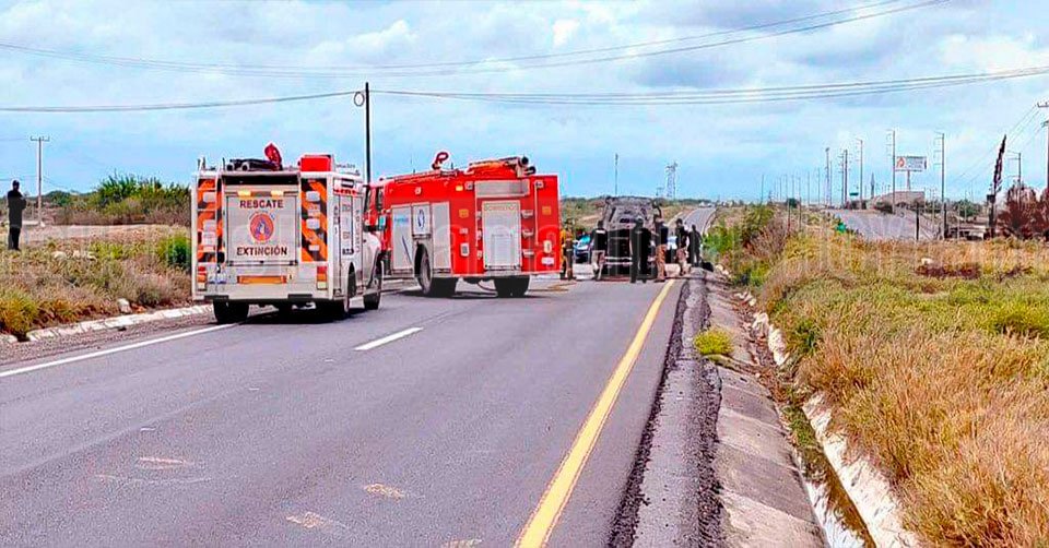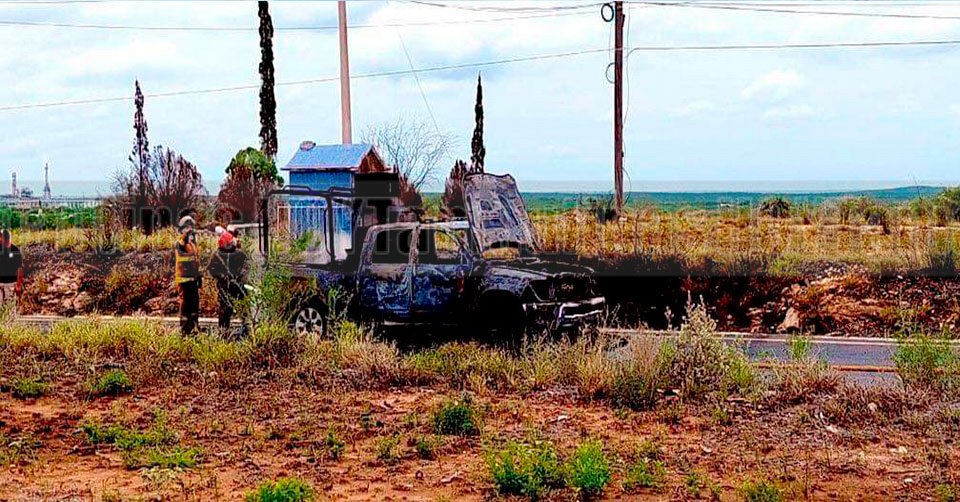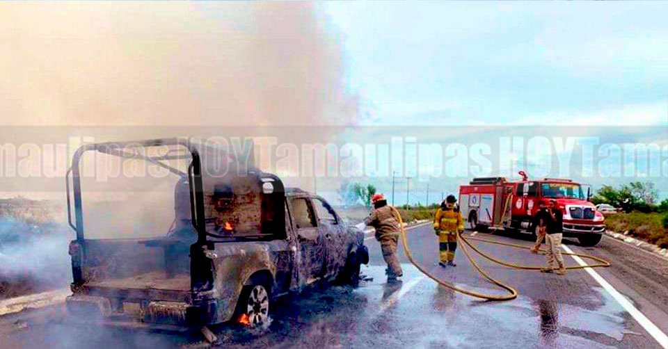 Reynosa, Tamaulipas. - Una patrulla blindada de la Policía Estatal quedó reducida a cenizas esta tarde, presuntamente por un corto circuito, en el kilómetro 19 de la carretera a Monterrey.