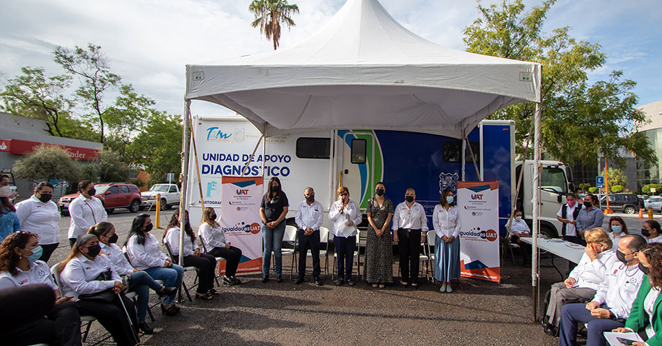 En el camellón central de acceso al campus se instaló la Unidad Móvil de Apoyo Diagnóstico, la cual brindará más de cincuenta servicios diarios de tamizaje por mastografía, a fin de prevenir y diagnosticar oportunamente el cáncer de mama, además de pruebas de Papanicolaou, a disposición de las mujeres de la UAT, así como a las familiares de algún integrante de esta comunidad universitaria.
