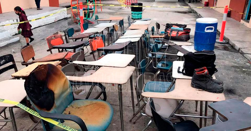 Inició la rehabilitación del aula quemada en Primaria de Matamoros