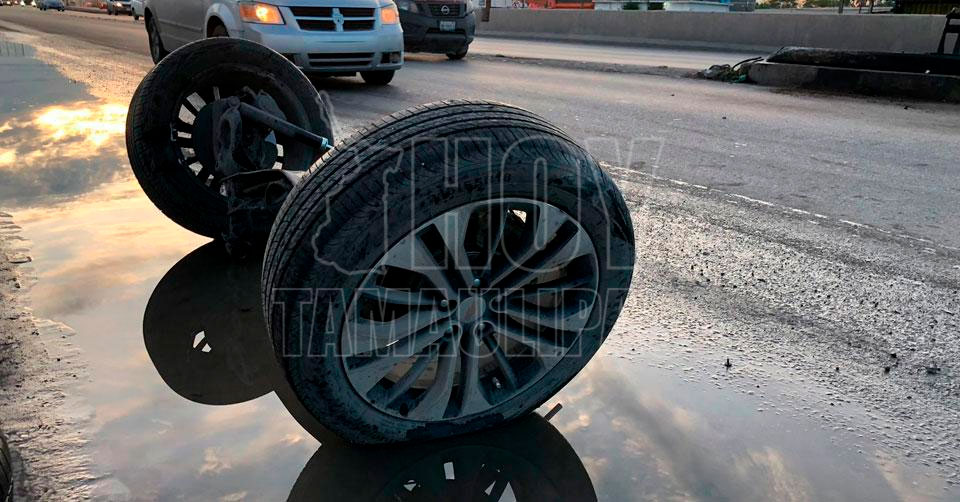 Debido al fuerte impacto, la camioneta quedó afectada, incluso los neumáticos traseros con todo y eje salieron expulsados.