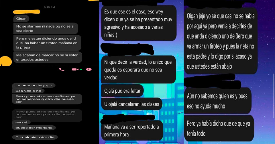Y es que durante la noche circularon versiones en grupos de chats entre alumnos y maestros de la amenaza de un atentado, supuestamente por parte de un alumno de la institución.