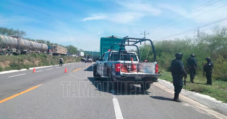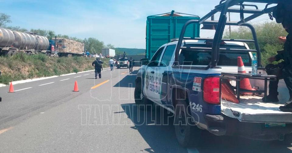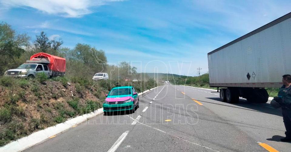 Trailero resulta ileso tras volcadura en la carretera Victoria-Monterrey