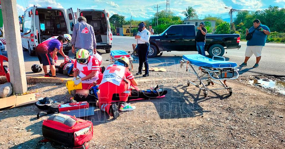 El conductor de la moto resultó con fractura expuesta en una de sus extremidades, mientras que la mujer presentaba probable fractura de cadera.