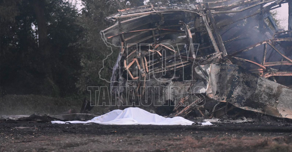 Acercándonos al lugar vimos la larga fila de vehículos y unidades pesadas al llegar al lugar km 67 en el ejido Santa Cruz, el intenso calor se sentía por el fuego que aún quedaba del combustible de la pipa, un escenario donde el autobús de servicios turísticos estaba consumido en su totalidad, a primera vista veíamos un cuerpo tendido en sobre la carretera, la pregunta de los reporteros que estamos ahí era “¿Cuántos muertos habrá?”, los elementos de Protección Civil que hacían su trabajo nos mencionaban “ hemos visto ocho cuerpos”, nuestra duda era por qué tan pocos cuerpos en un autobús de servicios turísticos.