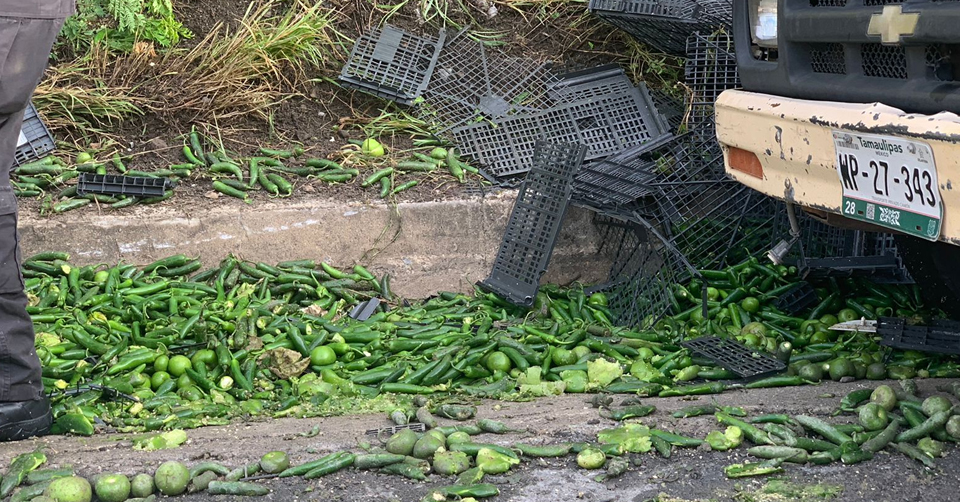 Ciudad Victoria, Tamaulipas. – Cientos de lugareños se dieron cita esta mañana al kilómetro 9 de la carretera Rumbo Nuevo, en donde rapiñaron cajas de chile, tomatillo y ejotes tras la volcadura de un camión.
