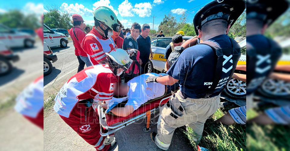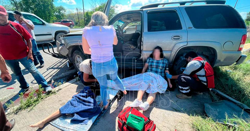 Matamoros, Tamaulipas. - Un saldo de cuatro lesionados, entre ellos un menor de edad y una embarazada, dejó como saldo un fuerte accidente en la carretera a la Playa Bagdad de Matamoros.