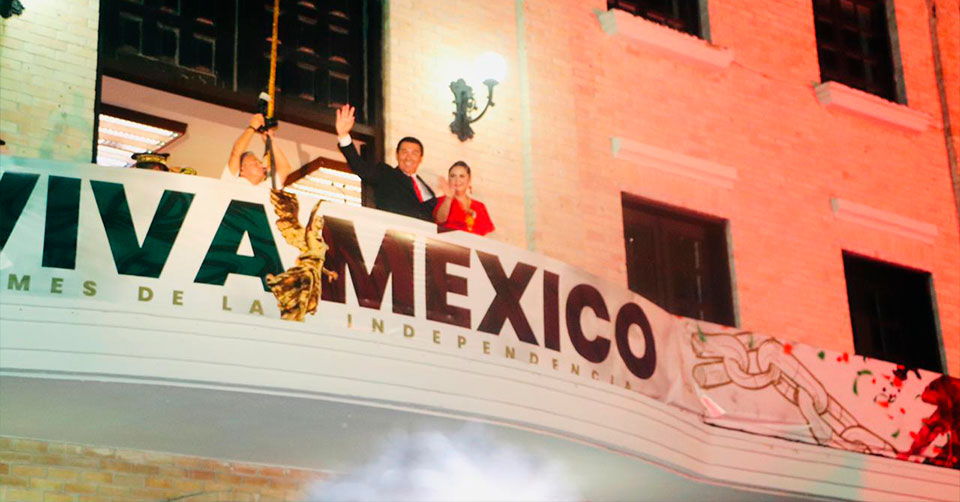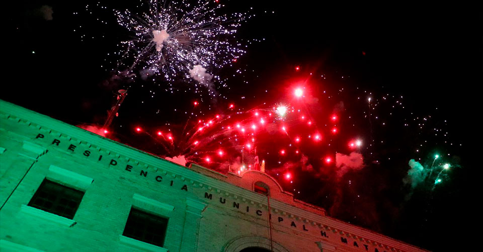 Matamoros, Tamaulipas. - El alcalde de Matamoros, Mario Alberto López Hernández, encabezó el Grito de Independencia esta noche ante miles de personas que acudieron.