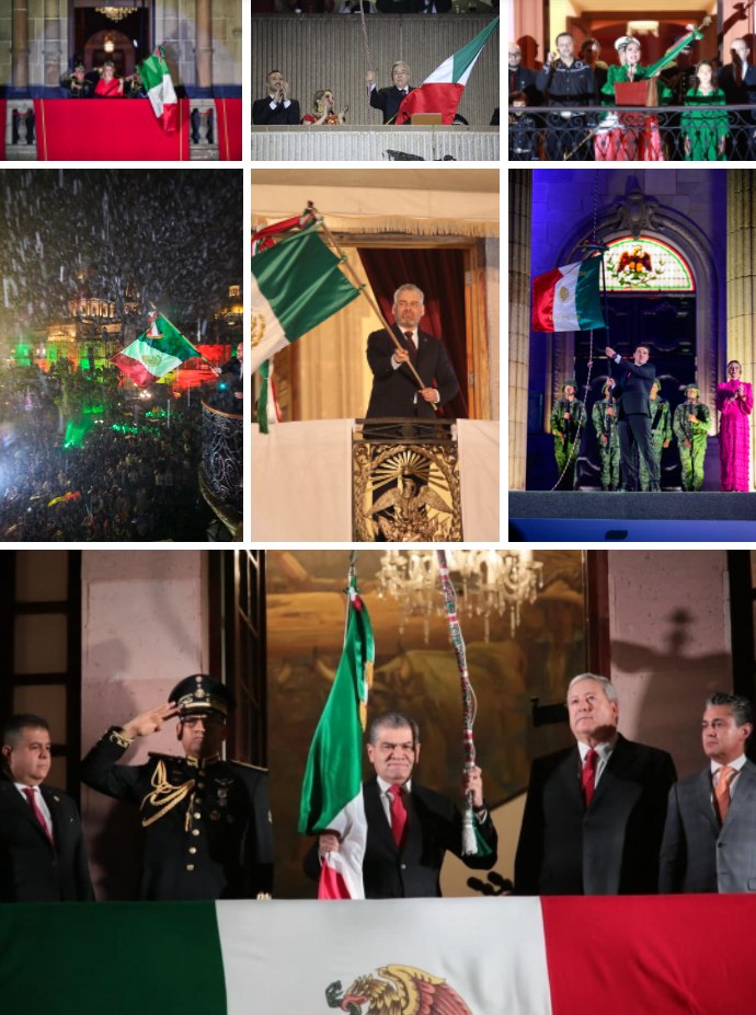 “Mexicanas, mexicanos, sinaloenses, Vivan los héroes que nos dieron patria, Viva Hidalgo, Viva Morelos, Viva doña Josefa Ortiz de Domínguez, Viva Allende, Viva Guerrero, Viva Aldama, Viva doña Leona Vicario, Viva la Independencia Nacional, Viva la Cuarta Transformación, Viva México, Viva México, Viva México, Viva Sinaloa”, gritó el gobernador para enseguida repicar la campana, “como lo hiciera hace 212 años el cura don Miguel Hidalgo y Costilla, dijo.