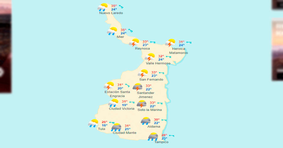 Las precipitaciones se podrían estar registrando en algunas regiones de los municipios de Nuevo Laredo, Mier, Reynosa, Valle Hermoso, Matamoros, San Fernando, Hidalgo, Victoria, Soto la Marina, Jiménez, Tula, El Mante, Aldama, Tampico, Madero y Altamira.