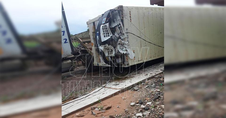 En el lugar colisionaron un tractocamión doble remolque propiedad de Transportes López y un automóvil compacto, unidades que se desplazaban en sentido de sur a norte, terminando el carro color azul llantas arriba, mientras que el vehículo de carga también se salió del camino, quedando volcado uno de sus remolques.