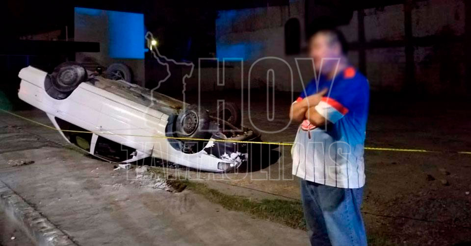 Matamoros, Tamaulipas. – La volcadura de un carro de la marca Nissan Tsuru se registró anoche en la Avenida Tamaulipas y calle Guatemala en Matamoros, en el cual viajaba un hombre de la tercera edad, ciudadano norteamericano.