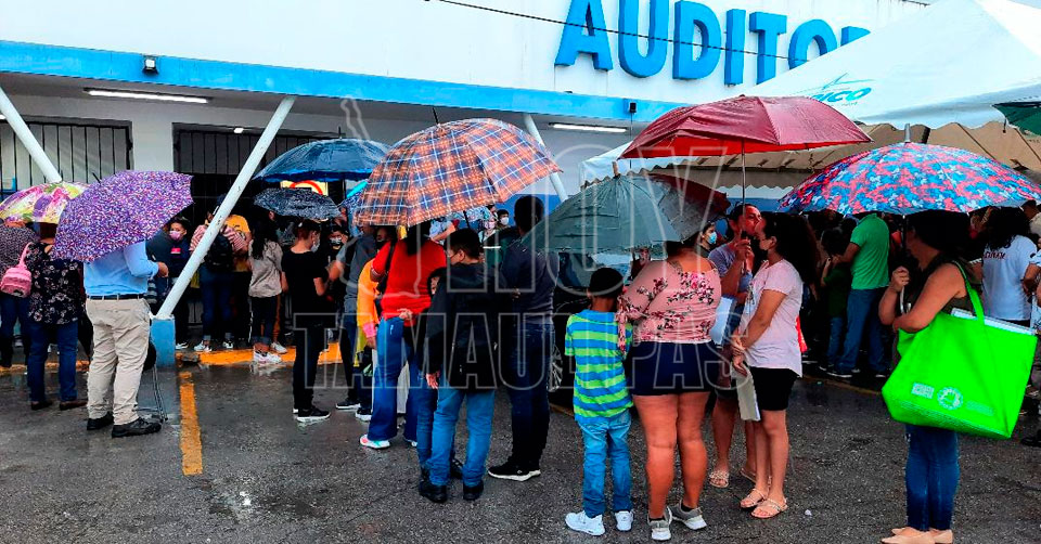 Lluvia no detiene a padres de familia para vacunar a sus hijos contra la Covid en Tampico