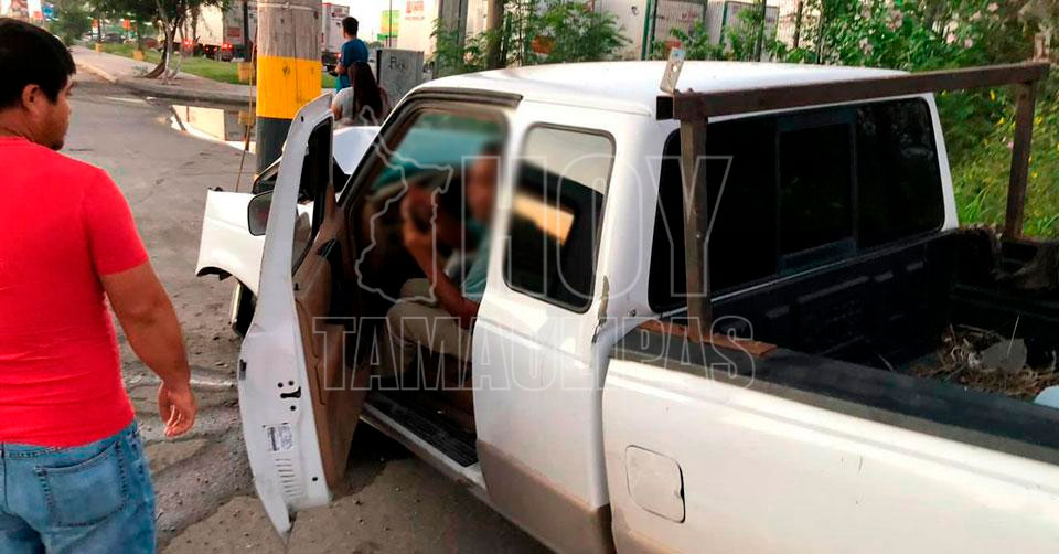 Matamoros, Tamaulipas. - Un empleado de la construcción resultó con golpes tras chocar su camioneta Ford Ranger contra un poste en Matamoros, luego de que la unidad sufriera una presunta falla mecánica y perdió el control de la misma.
