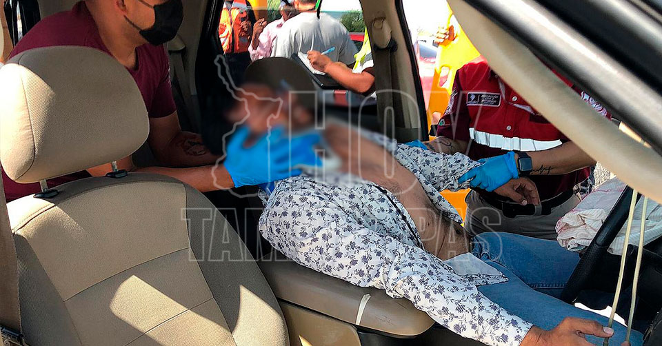 Elementos de Protección Civil y Bomberos lo atendieron en el interior de la camioneta, después lo subieron a la ambulancia para trasladarlo al hospital.