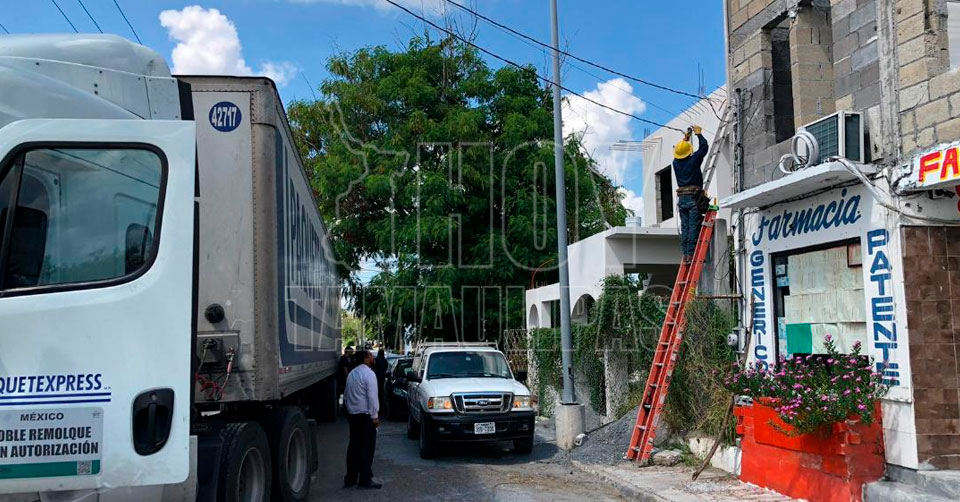 Matamoros, Tamaulipas.- Un camión de carga dejó sin el servicio eléctrico a un vecino de la calle Morelos, entre Primera y Tamaulipas en la ciudad de Matamoros, luego de que se llevó un cable de la Comisión Federal de Electricidad (CFE).