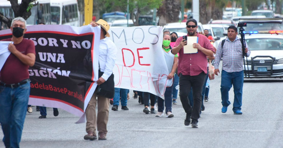 En la marcha participan trabajadores de todo el Estado, y algunos acudieron a sus centros de trabajo bajo protesta para mostrar su apoyoa sus compañeros.
