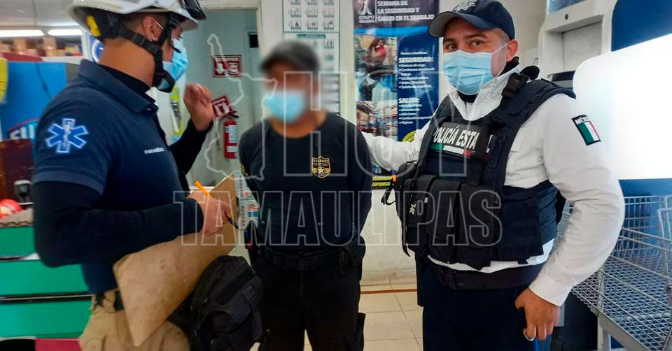 Al lugar llegaron elementos de la Policía Estatal para arrestar al trabajador del comercio y también arribaron paramédicos de Protección Civil para auxiliar al herido y hospitalizarlo.