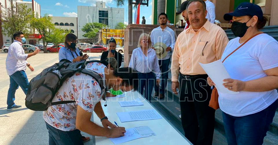 Desde las 12:30 horas llegaron a la plaza cientos de personas previo a la convocatoria realizada por un grupo de ciudadanos, para firmar en apoyo al gobernador electo y así poder presentarlas ante Américo Villarreal y buscar se acaben los embates sobre él.