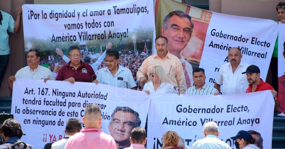 Ciudad Victoria, Tamaulipas. - Cientos de victorenses tomaron por asalto la Plaza Juárez para refrendar el apoyo al gobernador electo Américo Villarreal Anaya, ante las embestidas realizadas por el gobierno de Tamaulipas.