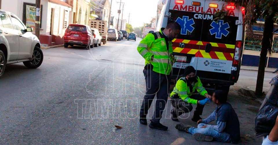 Tampico, Tamaulipas. - Con lesiones en su brazo derecho y algunas otras partes del cuerpo, resultó un motociclista que se desempeña como repartidor de Kentucky Fried Chicken, mismo que derrapó en su frágil unidad, debido a que un microbús presuntamente le invadió carril de circulación.