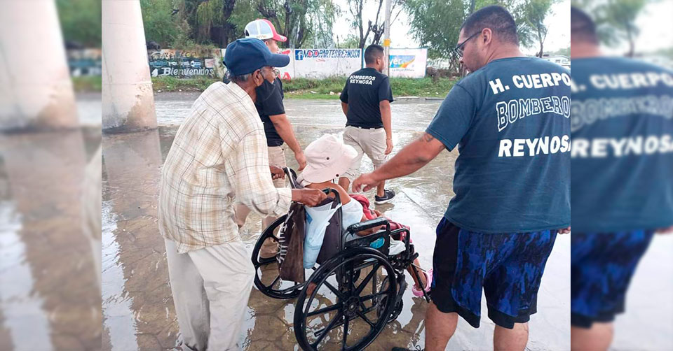 Rescatan a pareja de ancianos atrapados por corriente de lluvia en Reynosa