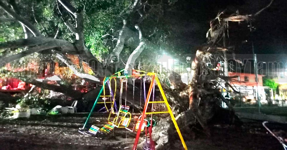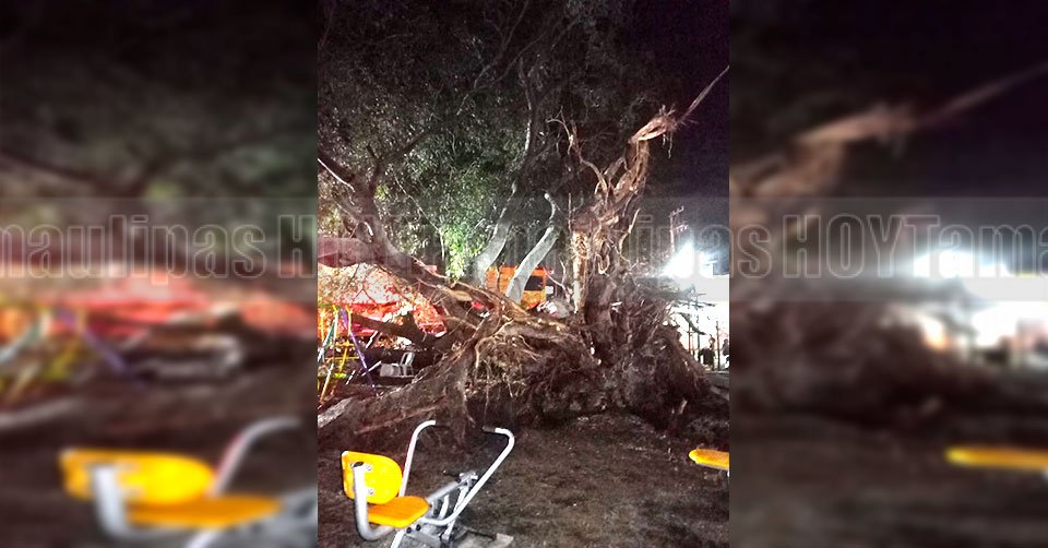 Cae árbol de 150 años de antigüedad en Madero; deja 3 heridos