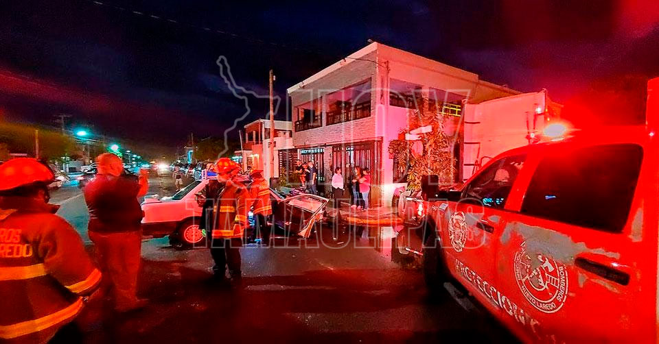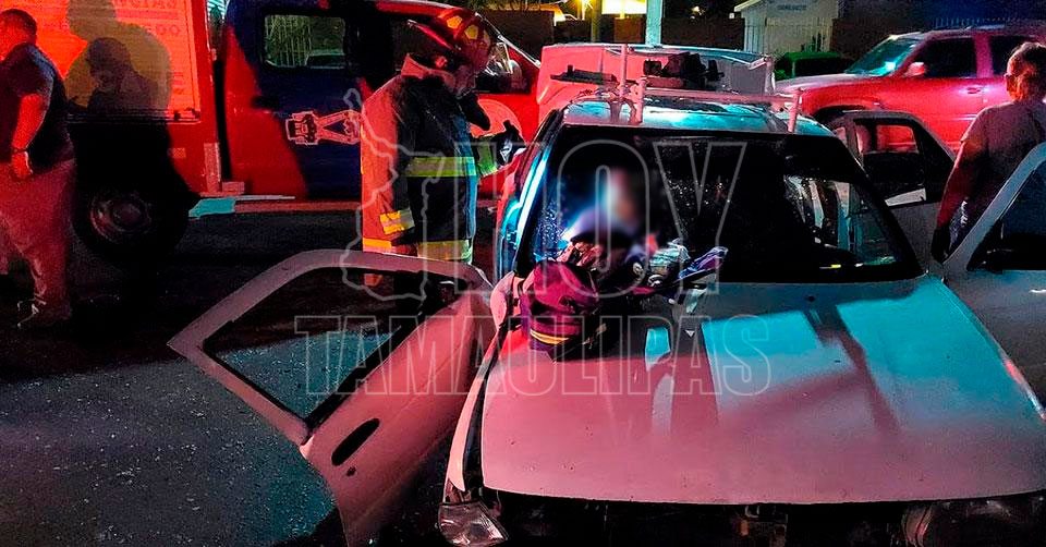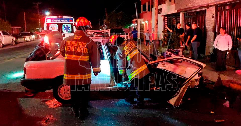Mujer queda herida y atrapada en auto tras encontronazo en Nuevo Laredo