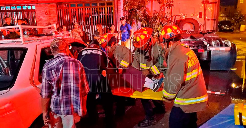 Sanjuana, de 58 años, fue liberada del vehículo por elementos de Protección Civil y Bomberos, quienes en ambulancia la trasladaron al Hospital San Gerardo para su atención médica.