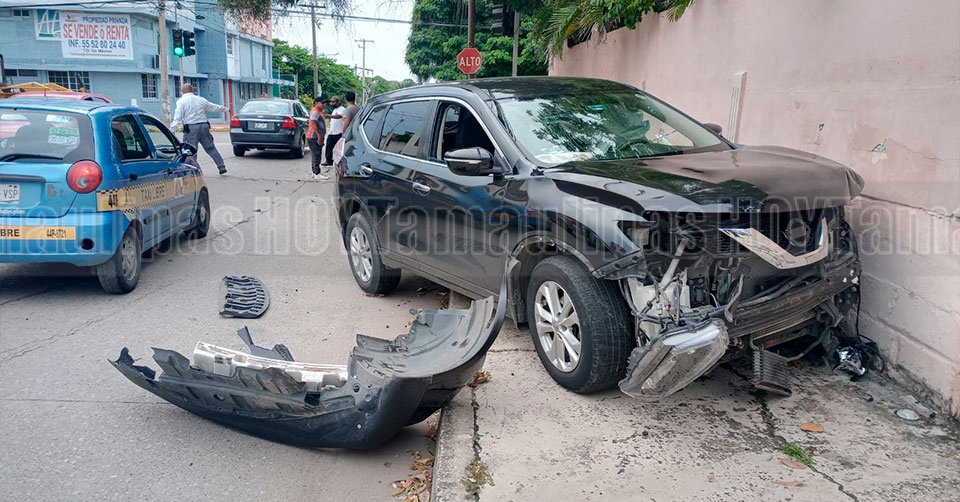 Las autoridades confirmaron que en el percance participó una camioneta Nissan X-Trail color negro de modelo reciente y con placas de circulación del Estado de Veracruz que manejaba una joven, vehículo que terminó proyectado contra la barda de un domicilio, así como un automóvil Nissan March de la base de taxis Herma, que después del impacto terminó contra un poste de madera.