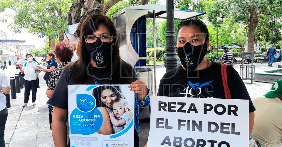 Tampico, Tamaulipas. - Una jornada de oración denominada "40 Días por la Vida" es la que dieron inicio grupos religiosos ecuménicos que están en contra de la práctica del aborto en Tamaulipas y México, por lo tanto, estarán en vigilia desde este día y hasta el domingo 6 de noviembre en la Plaza de Armas frente a la Iglesia Catedral, declaró la vocera del grupo cristiano "40 Días por la Vida de Tampico" Mayra Karina Velázquez Ruano.