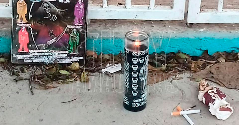 Pero esta mañana al ingresar las autoridades educativas se encontraron un altar a la Muerte y diversos objetos como veladoras, cigarros, un muñeco envuelto y una imagen en un cuadro de madera.