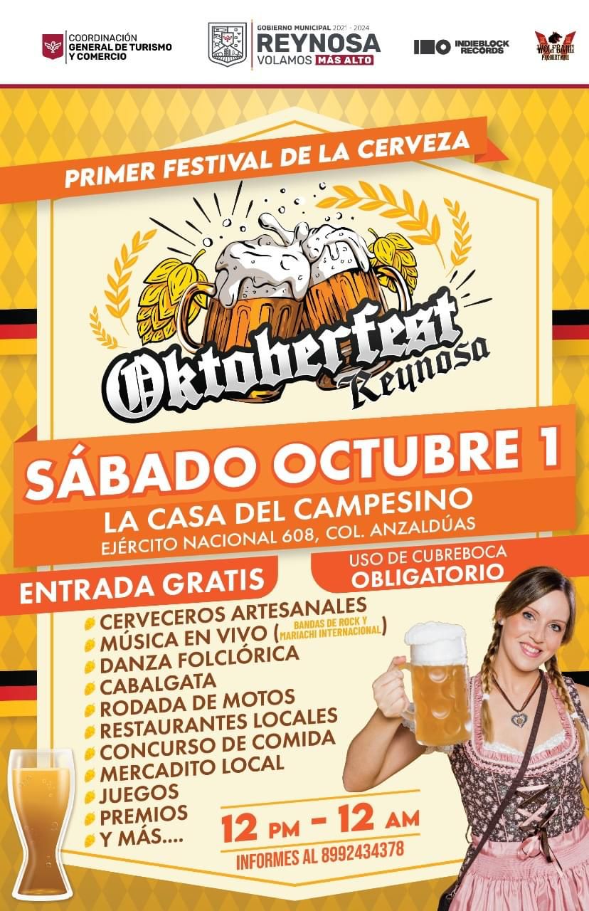 Reynosa, Tamaulipas. - Por primera ocasión se llevará a cabo un Oktoberfest en Reynosa, el cual es un evento completamente familiar que reunirá a cervecerías artesanales, negocios locales, microempresarios, restaurantes, talento local, entre otros.