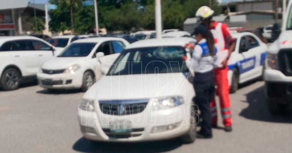 Paramédicos de la Cruz Roja llegaron al sitio y valoraron al conductor que se golpeó la mano al soltar el puñetazo contra el vidrio.