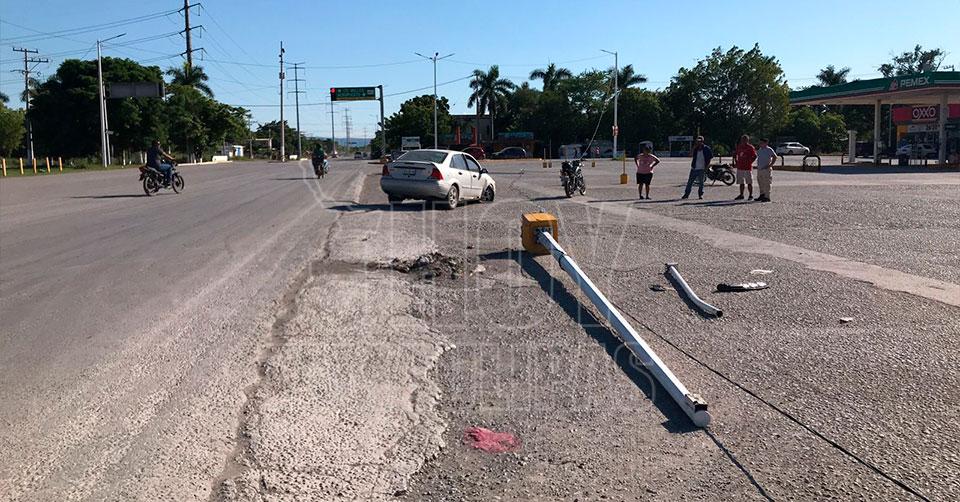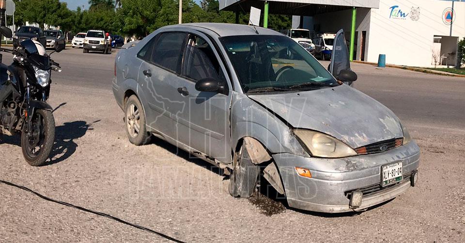 Presuntamente el exceso de velocidad provocó que el conductor de un automóvil Ford Focus perdiera el control al volante, y se estrellara contra las luminarias propiedad del municipio de El Mante.