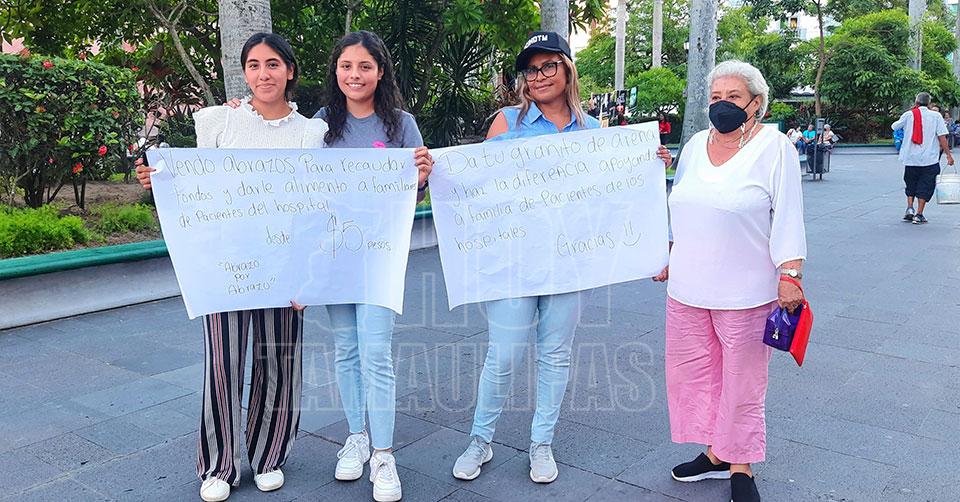 Tampico, Tamaulipas. - Una jovencita de Tampico tomó la iniciativa de 'vender' abrazos a los paseantes que se hallaban descansando en la Plaza de Armas de la ciudad, con la finalidad de comprar con lo recolectado comidas y cenas, a fin de llevarlas a los familiares de los enfermos que están en hospitales de la zona sur de Tamaulipas.