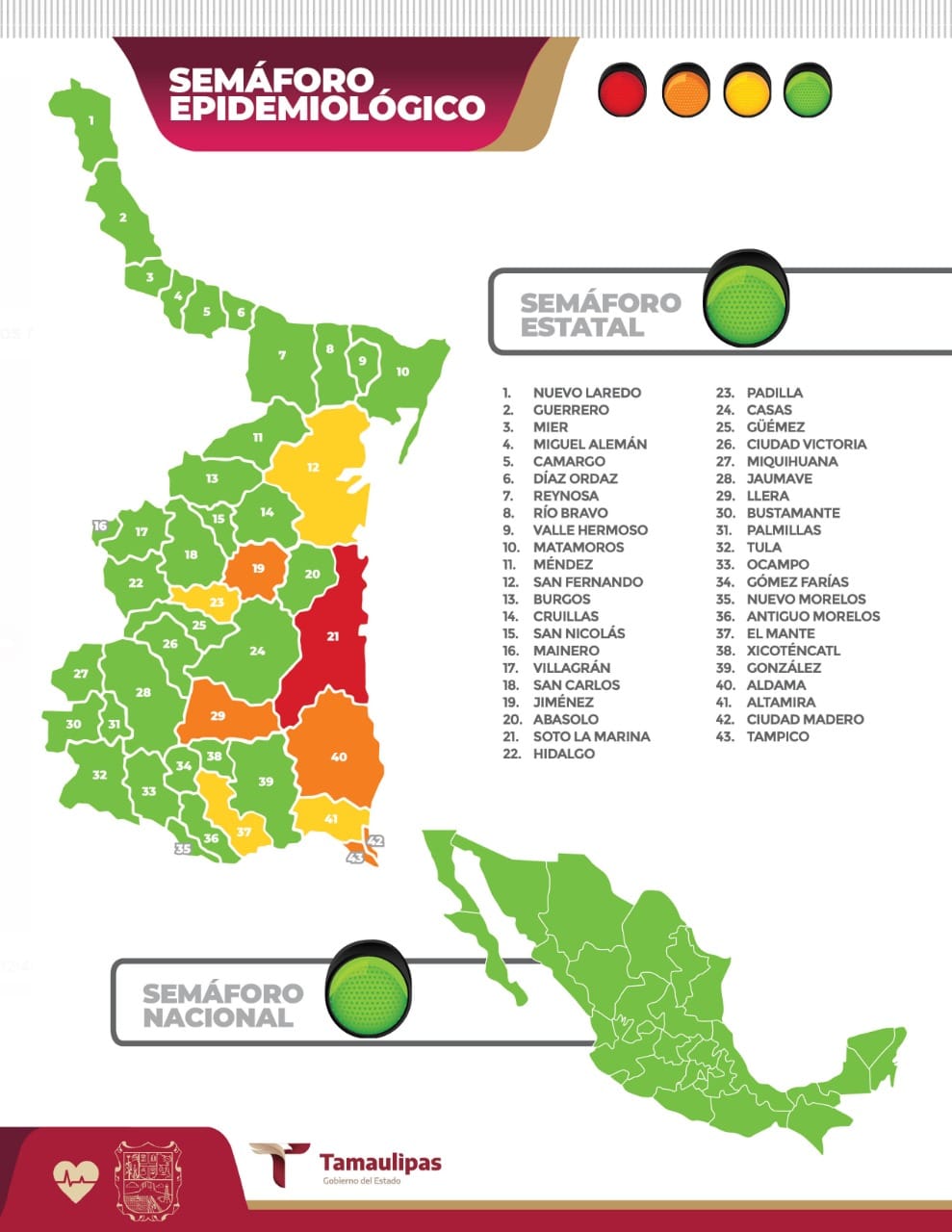 Inicia este lunes Tamaulipas con 31 nuevos contagios de Covid-19