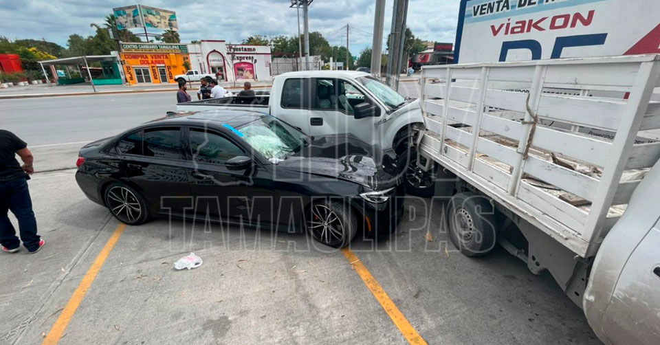 Matamoros, Tamaulipas. - A la misma hora y dirección, ocurrieron varios accidentes que movilizaron a bomberos, elementos viales y unidades de Protección Civil.