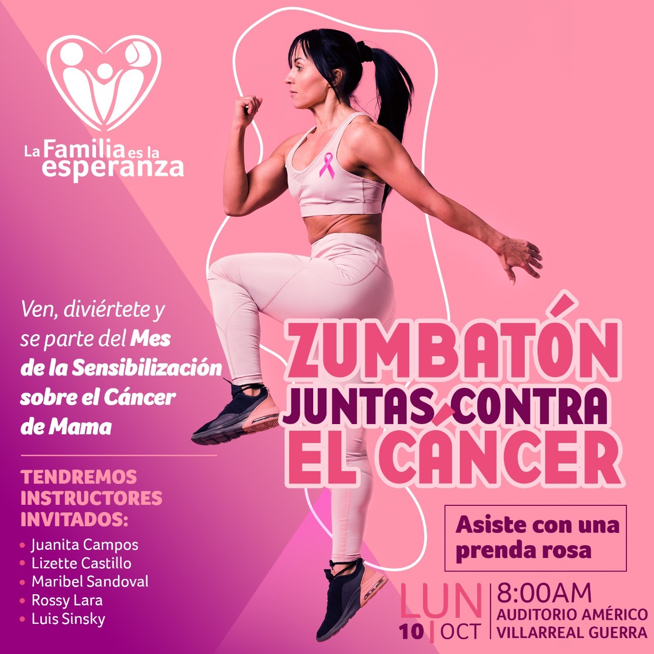 Ciudad Madero, Tamaulipas. - El Sistema DIF de Ciudad Madero que preside la Sra. Ana Cristina Organista de Oseguera, invita a la ciudadanía en general a que se unan al zumbatón “Juntas contra el Cáncer”, como parte de las actividades realizadas para reforzar la concientización durante octubre, el Mes Rosa, en el que se conmemora el Día Internacional de la Lucha contra el cáncer de mama.