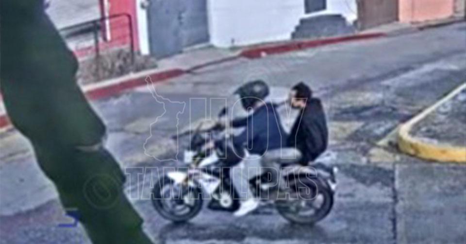 En la gráfica, se observa a dos hombres, con sudaderas oscuras a bordo de una motocicleta de color blanco.