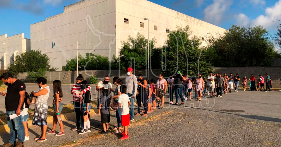Desde antes de las ocho de la mañana una larga fila se generó en las afueras del gimnasio de la Universidad Autónoma de Tamaulipas (UAT) en donde operó este módulo de vacunación.